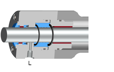The sealing combinations work according to the following principle: When the system starts, a hydrodynamic oil flow is built up in the floating gap seal via the cylinder chambers, so that it centres itself radially around the piston rod in a metallic, contactless, "floating" manner. When pressure is applied, a bush made of steel deforms and forms a throttle gap, which acts as a non-contact sealing gap of a few 1/100 mm. However, this process only works with a production accuracy in the range of a few µm. Otherwise, the leakage would lead to high hydraulic losses. Leaking leak oil is returned to the fluid circuit without pressure via a collecting port. The absence of a touching, pressurised seal minimises the static and sliding friction in the cylinder. The floating gap seal only has a pressure-reducing function with minimal leakage. Therefore, the piston rod is guided by means of friction-optimised wear rings. Nevertheless, a cylinder with a floating gap seal can also absorb relatively high lateral forces. A decisive argument for cylinders with a floating gap seal is the price. Because this quality only differs in the lower permissible side loads from cylinders with hydrostatically mounted piston rod guide, but brings a price advantage of about 30%.