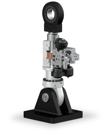 The patented floating gap seal of the Servofloat design is used in the controlled servo hydraulic actuators, which apply a force of 400 kN. A steel bushing follows the radial deflection of the piston rod with a sealing gap of a few 1/100 mm, which is practically constant over the entire pressure range. However, this process only works with a production accuracy in the range of a few μm, as otherwise the leakage leads to high hydraulic losses.