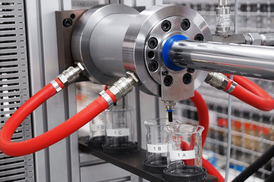 To determine the characteristic values of a seal, seal test stands are suitable, with which a wide variety of operating conditions can be simulated. The focus is often on the friction force of the seals, tightness on rods and shafts, temperature behaviour and wear.