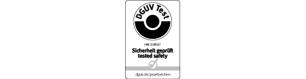 This clamping unit carries the certificate of the DGUV Test (testing and certification system of the German Social Accident Insurance). For use as a safety component for the Ratio-Clamp® a B10D value according to EN ISO 13849-1 is available. The 2-fold safety required by the DGUV for the maximum holding load is already taken into account in the load specification in the technical data.