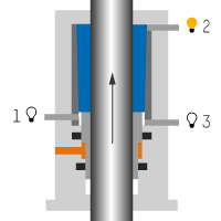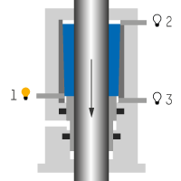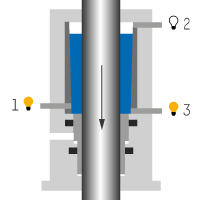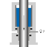 If the releasing pressure drops, the clamping segments, which are under spring preload, rest against the rod to be clamped. The resulting friction secures the load and the safety catcher is ready to take over the load.