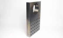 Test specimen holder Manufacturing steps: Drilling and milling as well as phosphating of the surface Material: S355, length 505 mm, width 60 mm and height 320 mm |