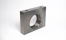 Bearing housing block for hydrostatic guide pillars Manufacturing steps: milled, surface ground and surface burnished Material: Steel, length 400 mm, width 200 mm and height 600 mm, bore diameter 200 mm |