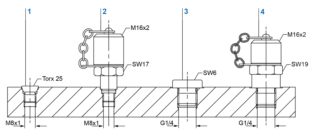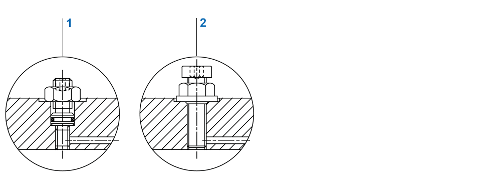The pressure ports are, unless otherwise specified in engineering drawings, designed for commercially available screw connections according to DIN 3852 – Part 2, Forms A and B.
